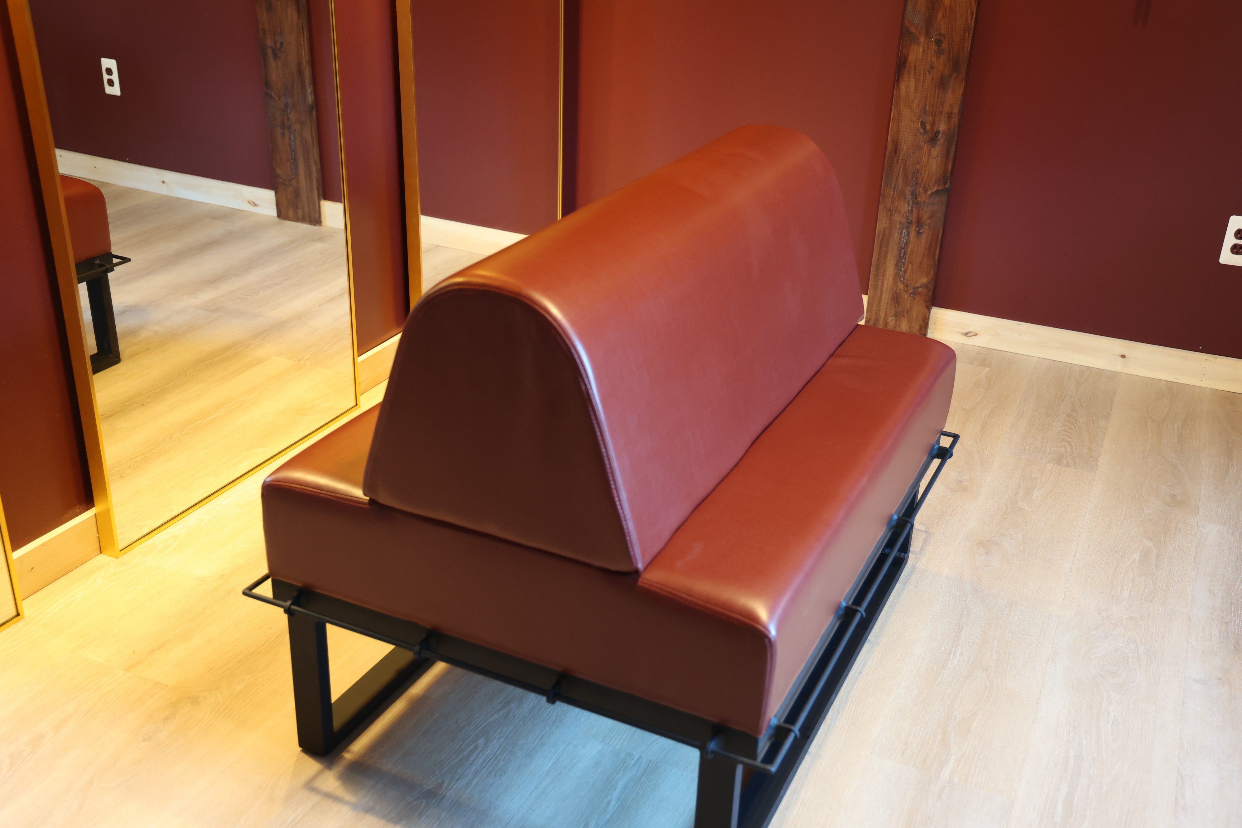 A custom built BDSM bench surrounded with hard points.