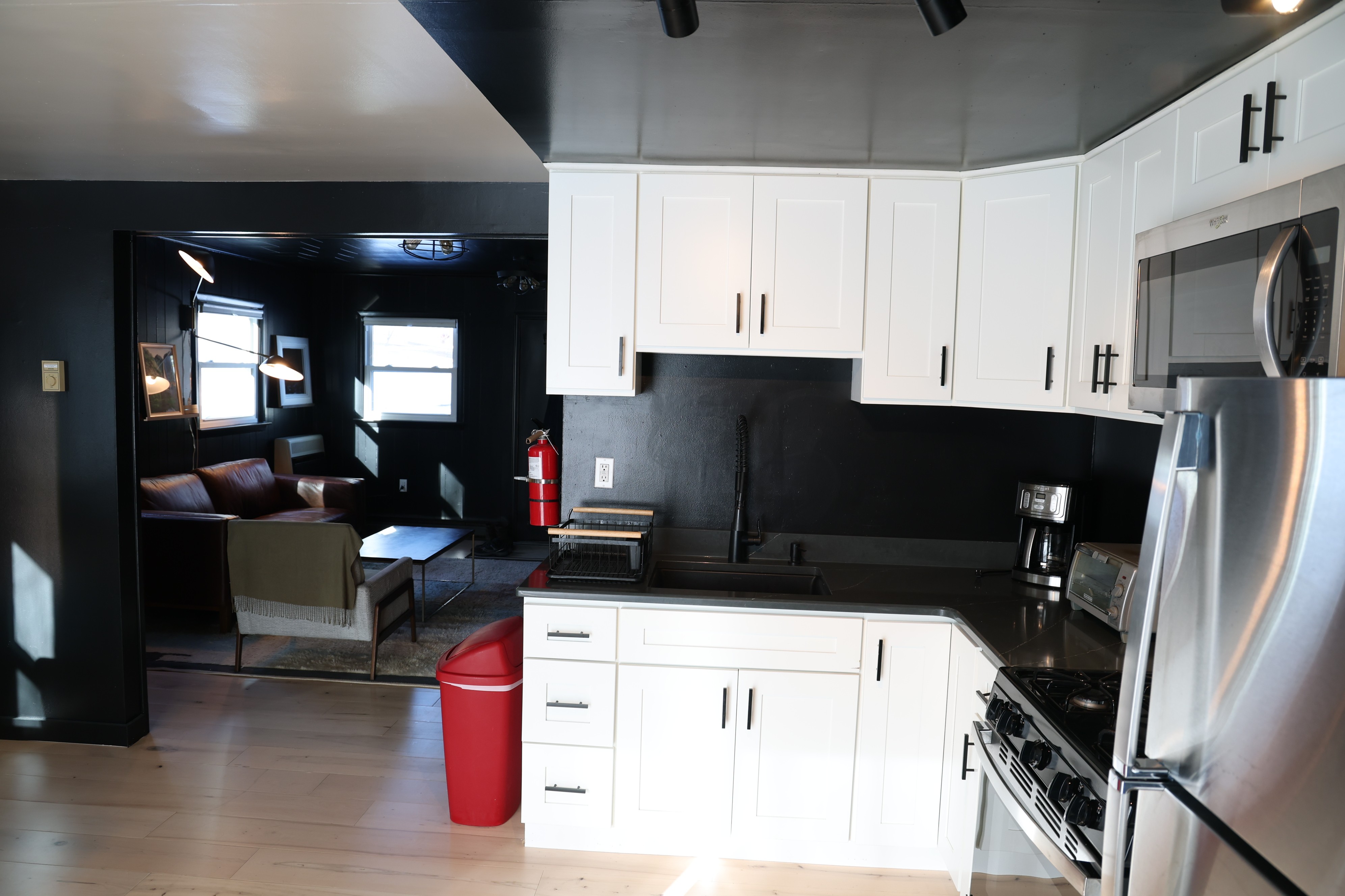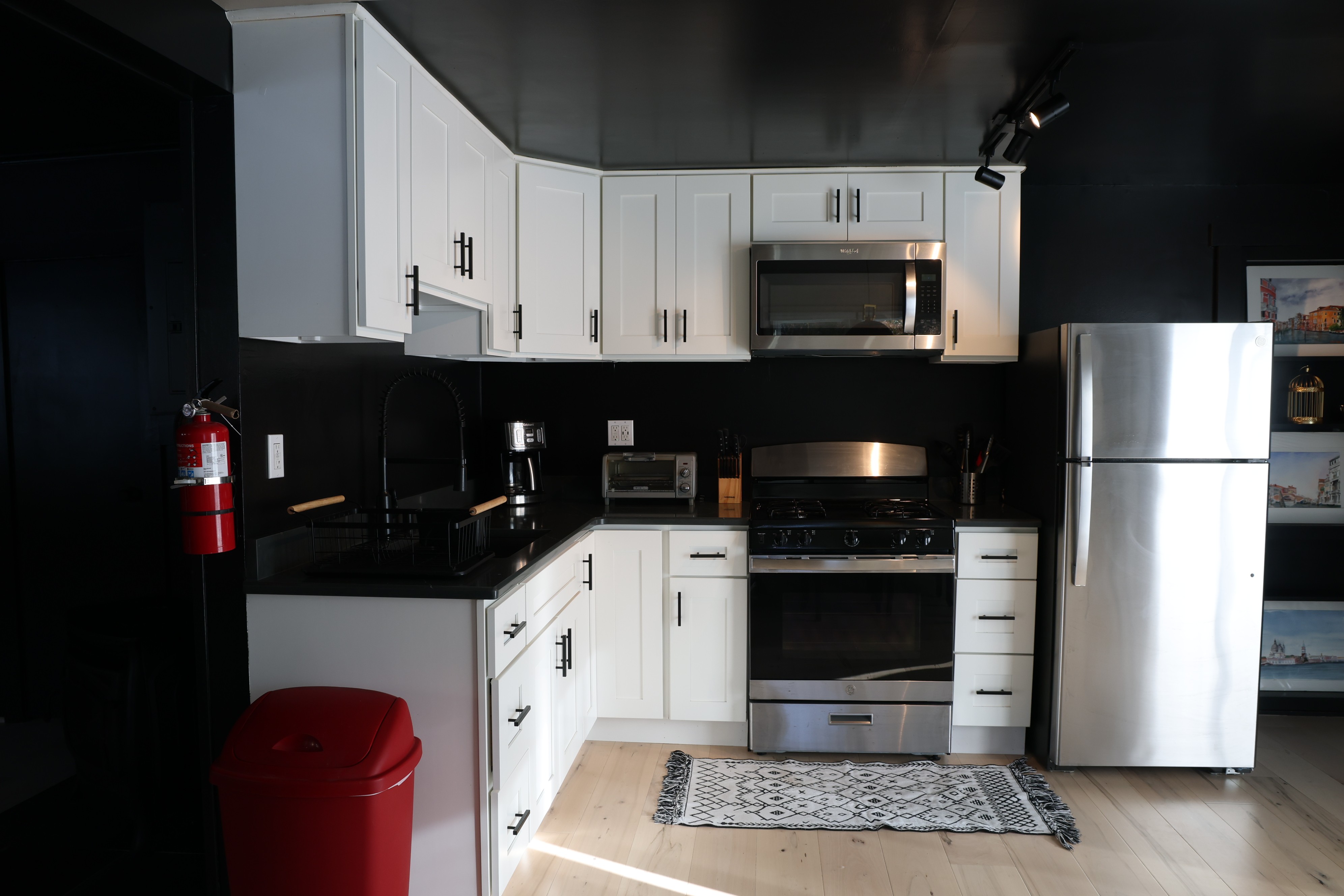 A fully equipped kitchen with modern appliances and generous prep space, perfect for both casual cooking and elevated meals.