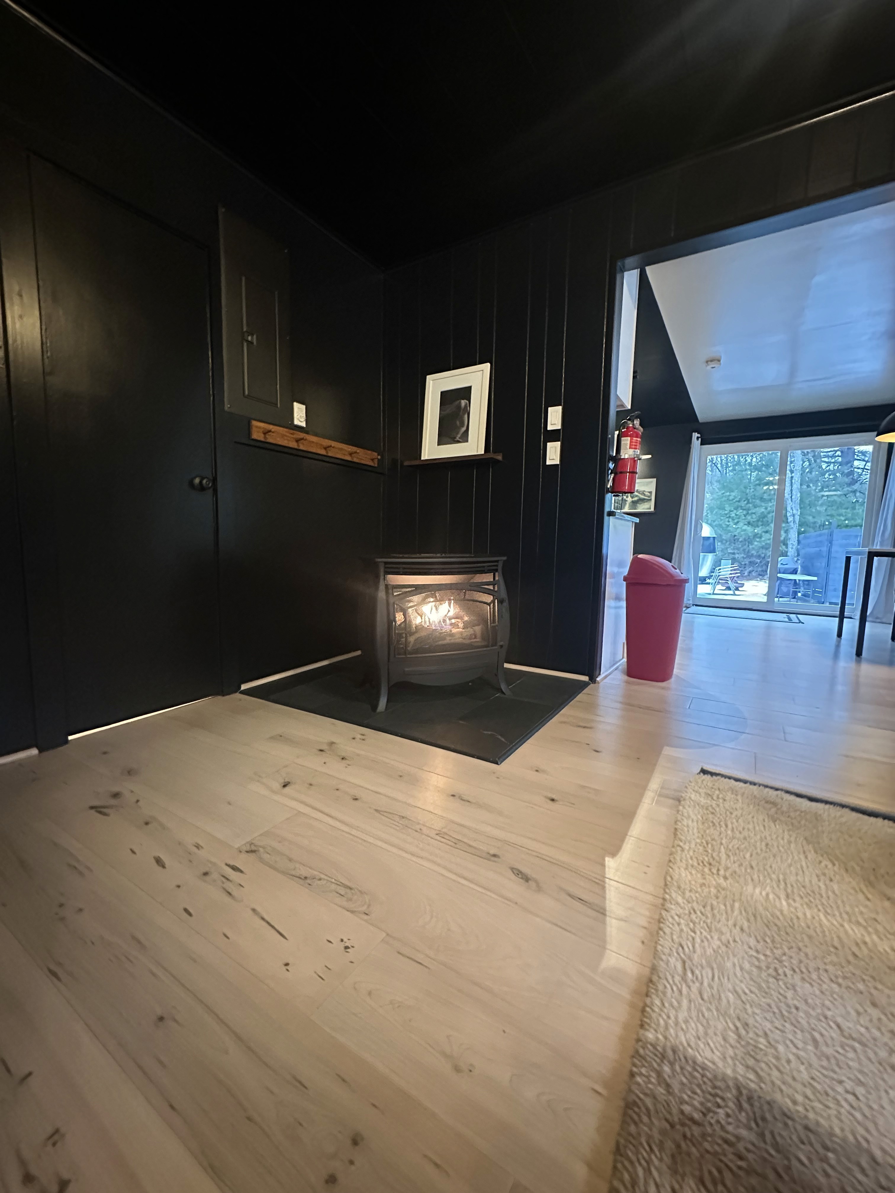 A cozy open-flame fireplace that brings warmth, ambiance, and a comforting focal point to the living space.